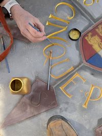 She has carved arrows and distances to the other four Cinque Ports and the design has been finished with edging to match the new Guildhall forecourt.